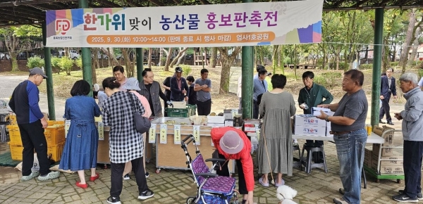 [충청중심뉴스] 계룡시품목농업인연구연합회는 민족 고유 명절인 추석을 맞아 30일 엄사1호공원에서 ‘계룡시 농산물 홍보판촉전’을 개최했다.