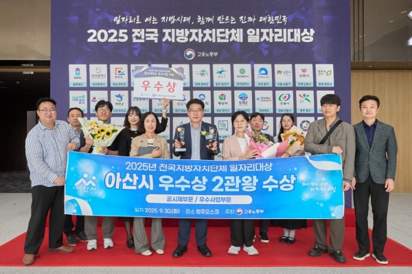 [충청중심뉴스] 충남 아산시가 고용노동부 주최 ‘2025 전국 지방자치단체 일자리 대상’에서 지역 일자리 목표 공시제와 우수사업 부문 모두 우수상을 거머쥐며 2관왕에 올랐다.