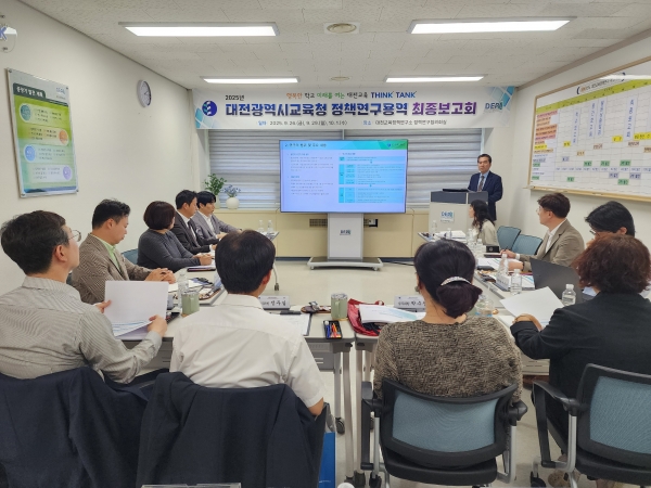 [충청중심뉴스] 대전교육과학연구원 대전교육정책연구소는 9월 26일 29일 10월 1일에 걸쳐 대전교육과학연구원 정책연구협의회실에서 대전시교육청 정책연구용역 최종보고회를 개최했다.