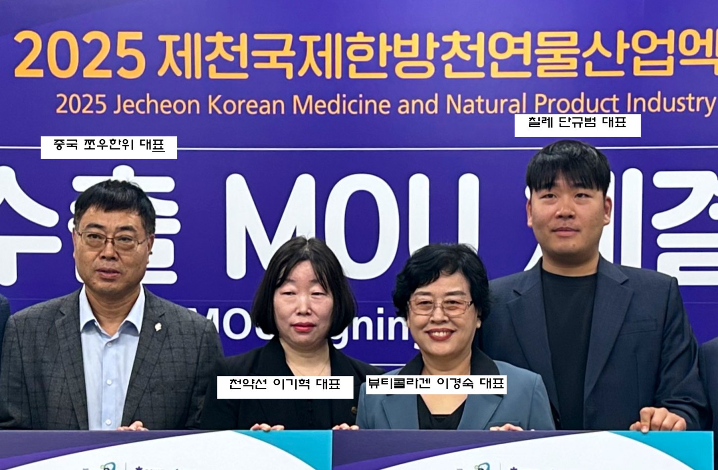한편 이날 협약으로 2025제천국제한방천연물산업엑스포 누적 수출협약 규모는 총 27건, 약 328억 원에 달한다. 협약을 체결한 산업관 참여기업은 화장품 8개사, 건강기능식품 6개사로 총 14개사이며, 협약 국가는 미국- 러시아- 호주- 태국 등 16개국에 이른다.