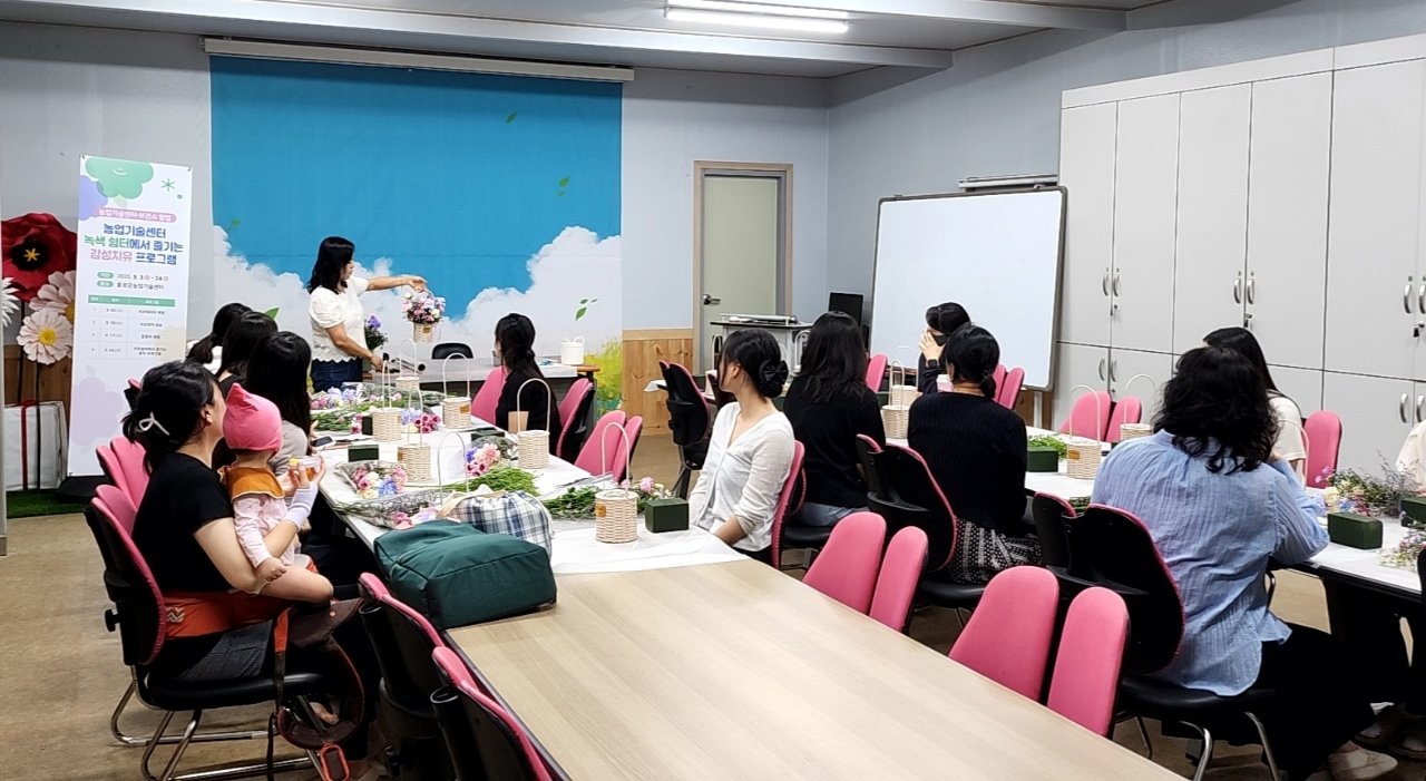 [충청중심뉴스] 홍성군농업기술센터가 보건소와 협력해 임산부와 난임부부를 대상으로 감성치유 프로그램을 운영한 결과 큰 호응을 얻었다. 이번 프로그램은 정서적 안정과 건강한 임신- 출산 환경을 돕기 위해 마련됐으며, 농업- 농촌 자원에 인문- 예술 요소를 접목한 체험형 방식으로 진행됐다.