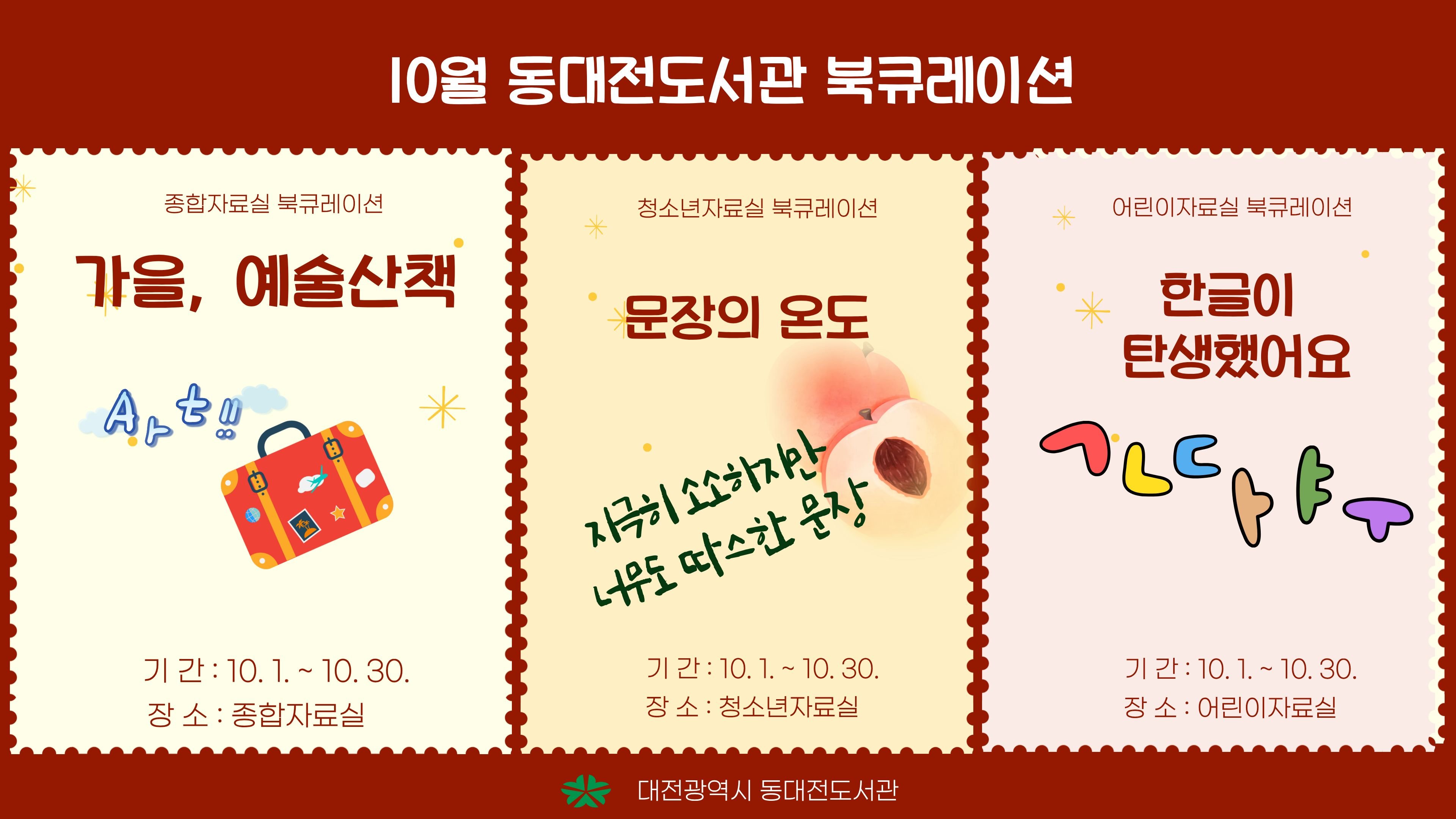 [충청중심뉴스] 동대전도서관은 가을 독서의 계절을 맞아 10월 한 달간 연령별 맞춤 주제 북큐레이션 전시를 운영한다고 10일 밝혔다.