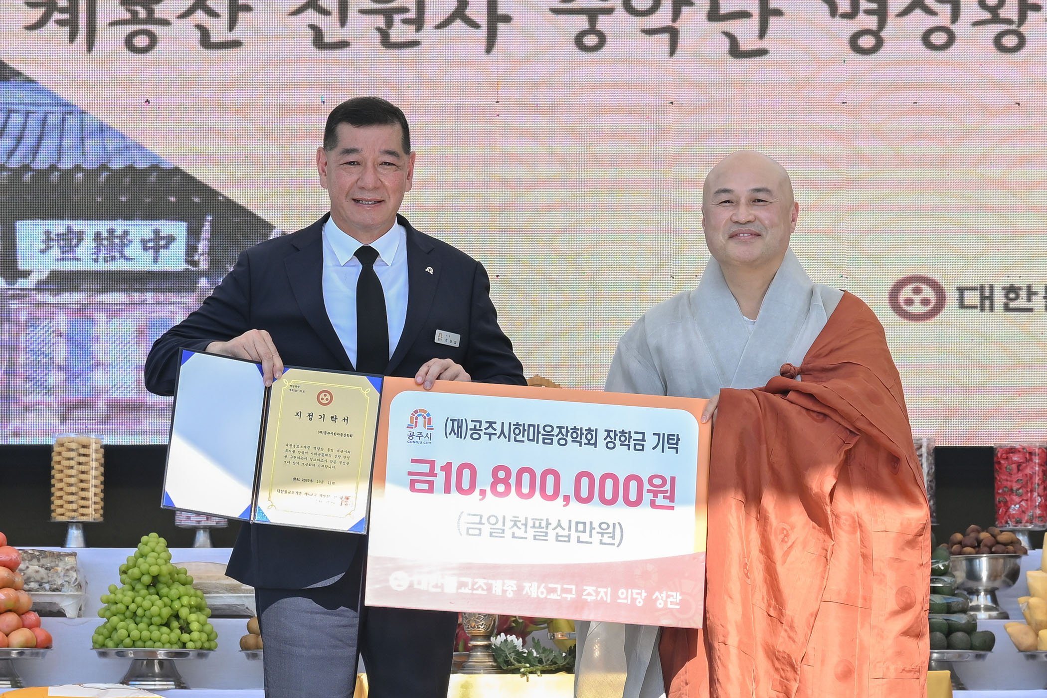 [충청중심뉴스] 대한불교조계종 제6교구 신원사(주지 의당 성관)는 지난 11일 공주지역 청소년들의 교육 지원을 위해 장학금 1,080만원을 (재)공주시한마음장학회(이사장 최원철)에 기탁했다.