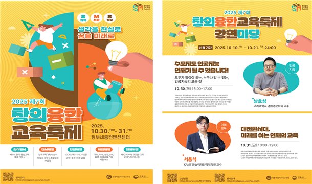 [충청중심뉴스] 세종시교육청(교육감 권한대행 부교육감 천범산, 이하 세종시교육청)은 오는 10월 30일(목)부터 31일(금)까지 이틀간 정부세종컨벤션센터에서 ‘제7회 창의융합교육축제’를 개최한다.