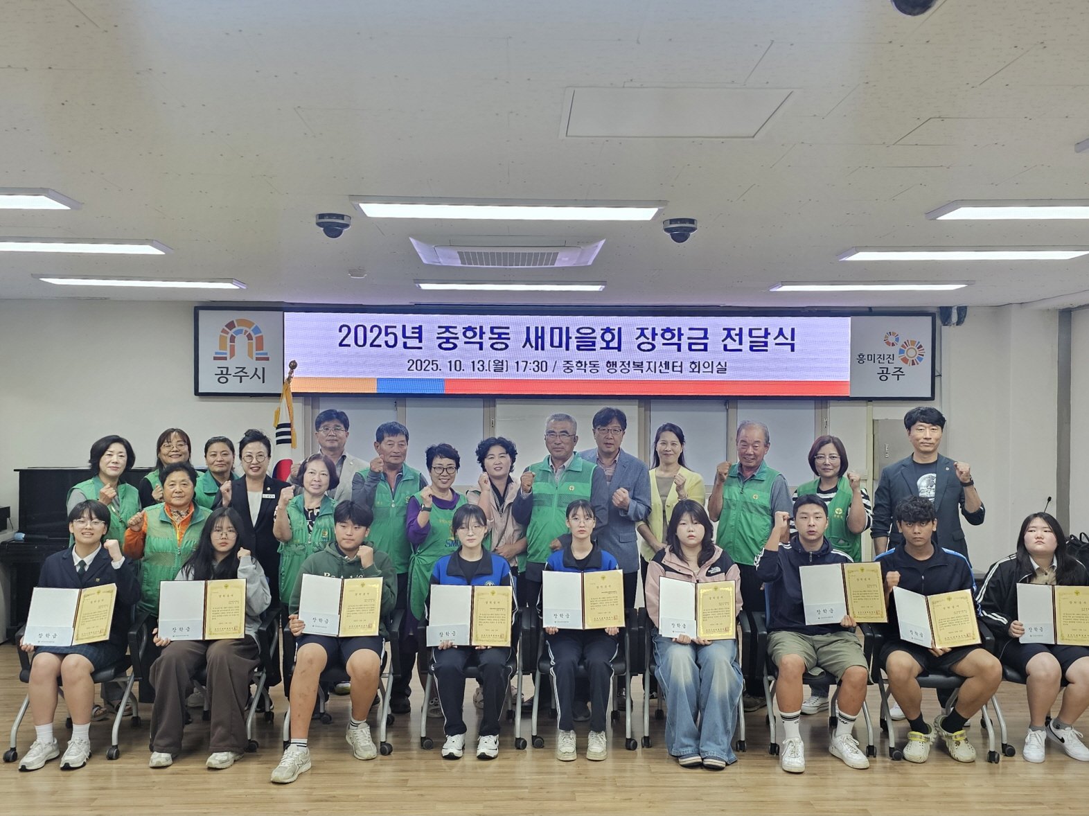 [충청중심뉴스] 공주시 중학동 새마을회(협의회장 정인묵, 부녀회장 오연욱)는 지난 13일 중학동 행정복지센터에서 모범 청소년 10명에게 장학금을 전달했다.