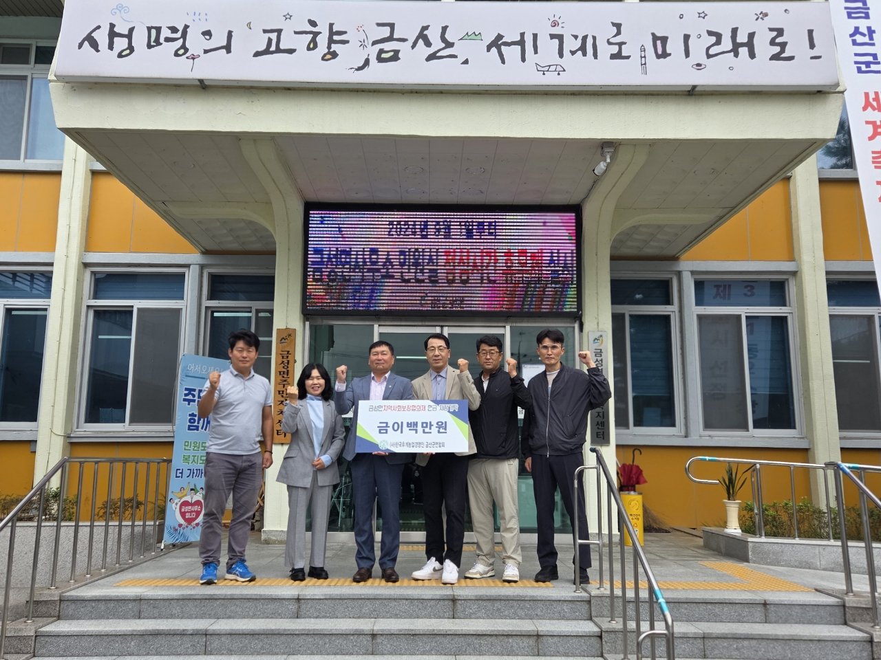 (사)한국후계농업경영인 금산군연합회(회장 김창섭)는 지난 13일 금성면행정복지센터를 방문해 금성면지역사회복지협의체에 200만원 상당의 현물을 기탁했다.
