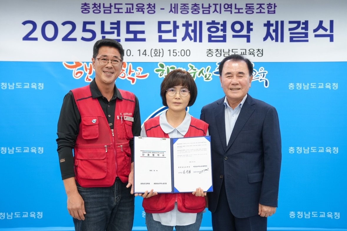 [충청중심뉴스] 충남교육청(교육감 김지철)은 10월 14일(화) 도교육청 회의실에서 세종충남지역노동조합과 단체협약을 체결했다.