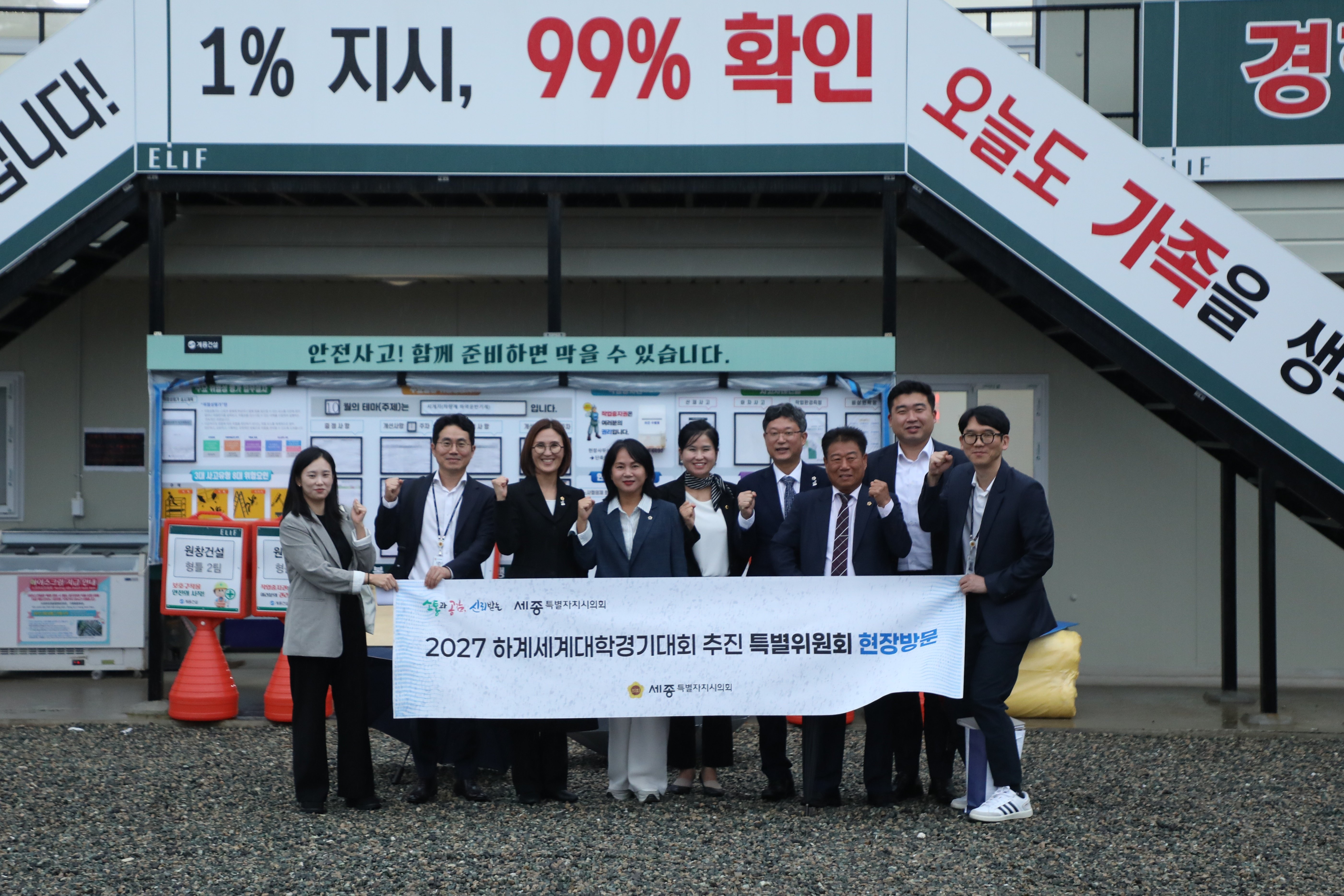 [충청중심뉴스] 세종시의회(의장 임채성) 2027 하계세계대학경기대회 추진 특별위원회(위원장 김현미, 이하 특별위원회)는 지난 13일 합강동 일원에서 추진 중인 선수촌 건립 현장을 방문해 공정 진행 상황을 점검하고 향후 활용 방안에 대해 논의했다.