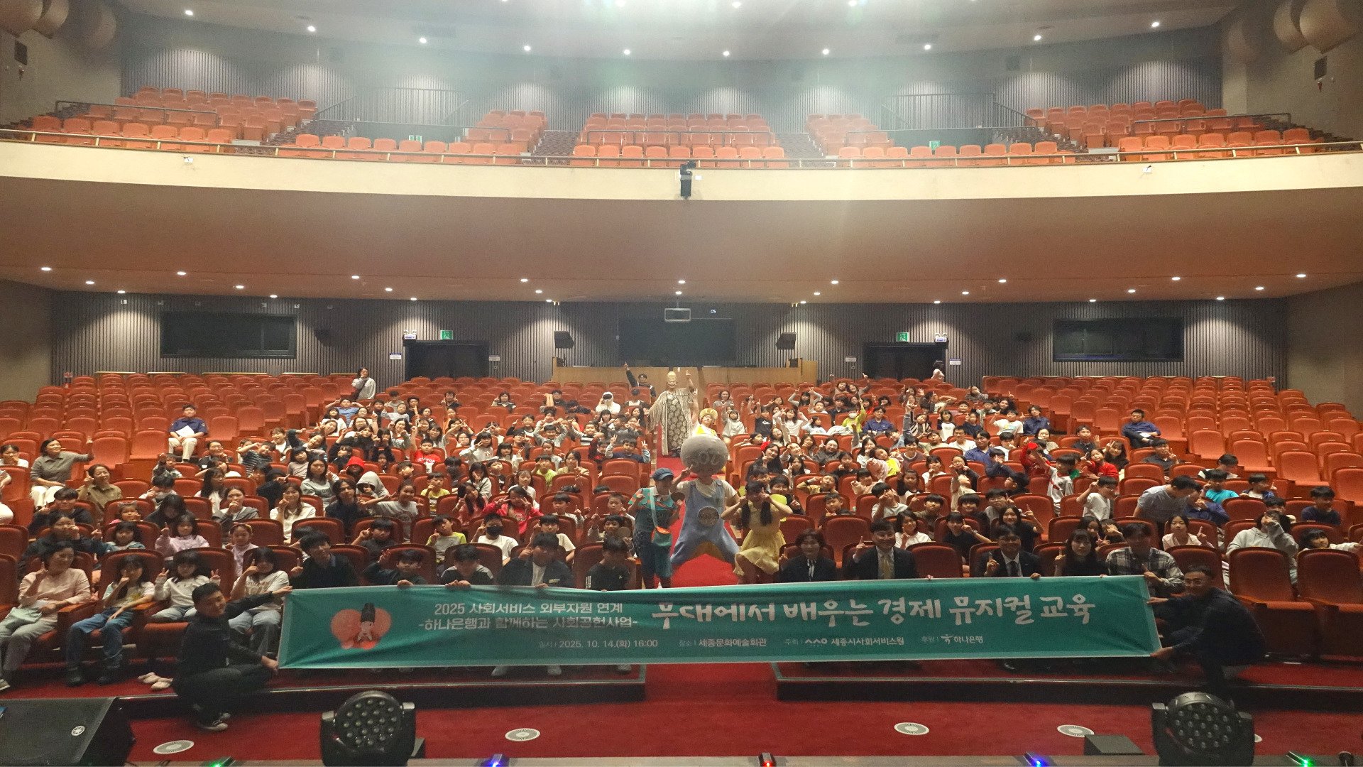 [충청중심뉴스] 세종시사회서비스원(원장 김명희)은 지난 14일 세종문화예술회관에서 세종시 내 11개 지역아동센터 207명이 참여한 가운데, 찾아가는 어린이 경제 뮤지컬 ‘재크의 요술지갑’ 공연을 개최했다.
