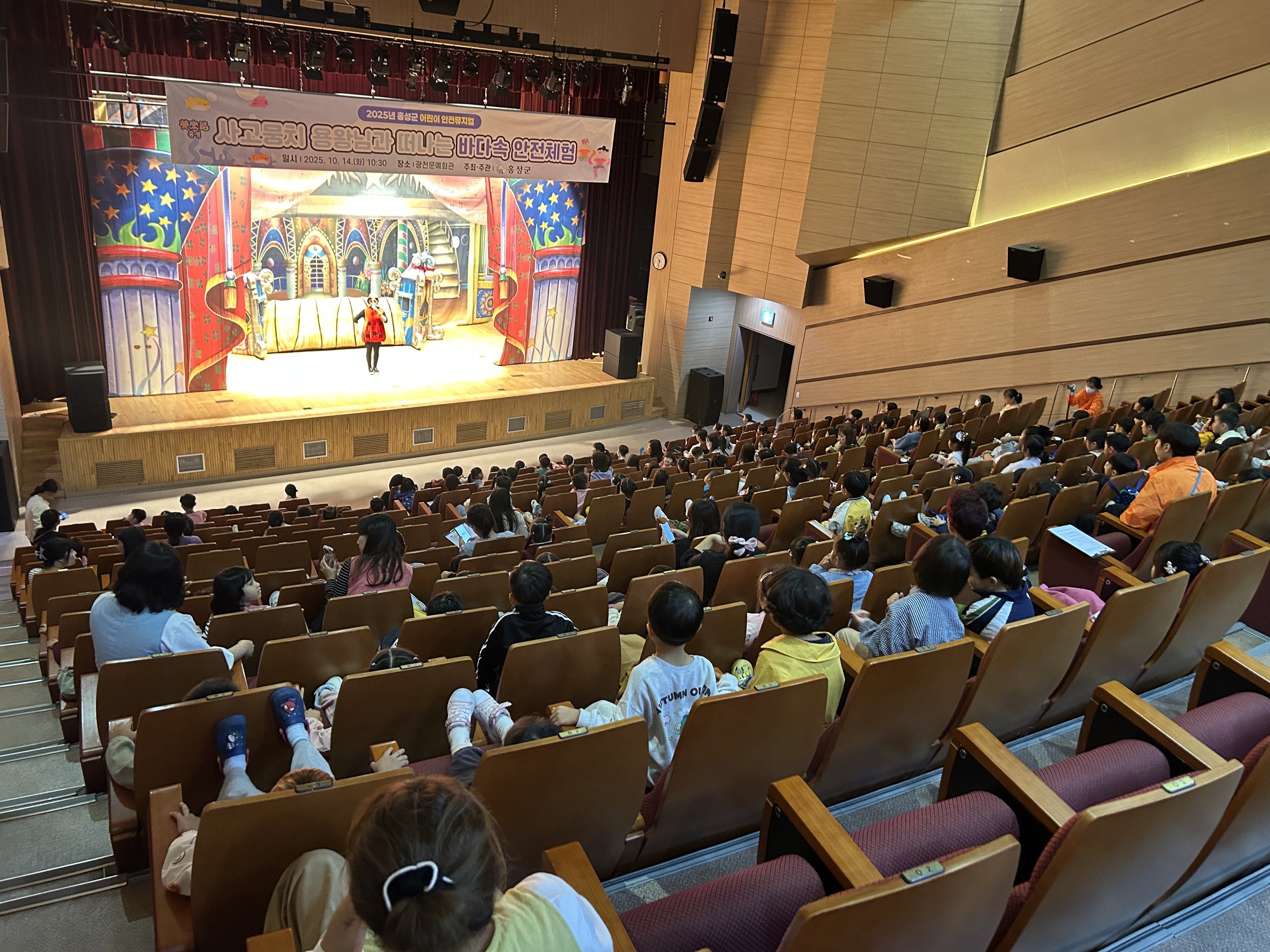 [충청중심뉴스] 홍성군은 지난 14일 광천문예회관 대공연장에서 미취학 아동(만5세~7세)을 대상으로 ‘사고뭉치 용왕님과 떠나는 바다속 안전체험’ 어린이 안전뮤지컬 공연을 개최했다고 밝혔다.