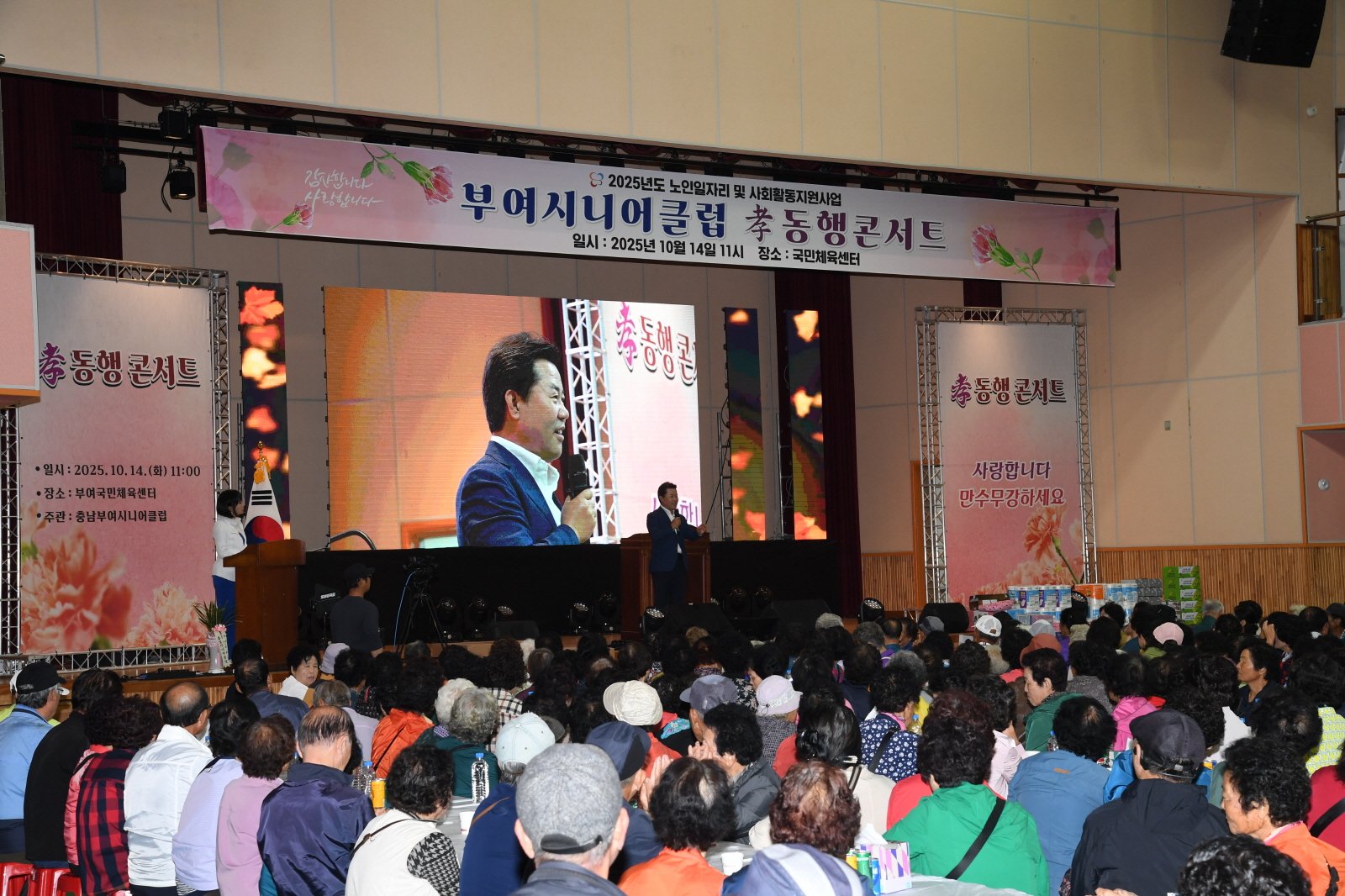 [충청중심뉴스] 부여시니어클럽은 지난 14일 부여국민체육센터에서 노인일자리 및 사회활동 지원사업 참여 어르신 약 1,800명을 대상으로 문화 활동인 ‘孝 동행 콘서트’ 행사를 성황리에 개최했다.