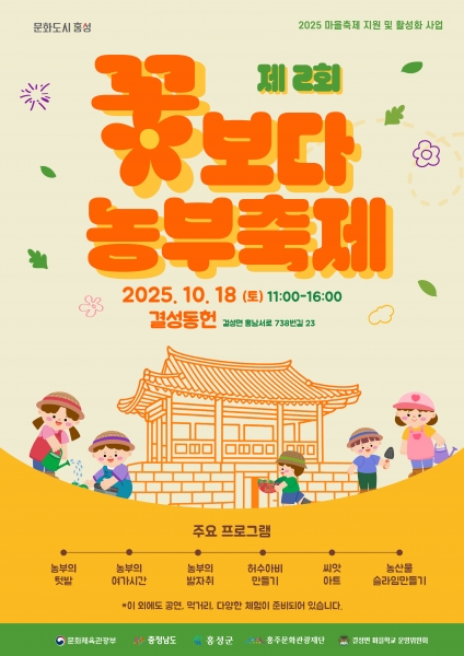 홍주문화관광재단 최건환 대표이사는 “‘꽃보다 농부 축제’는 주민이 직접 기획하고 실행하는 마을 중심의 문화축제이자, 농촌의 일상 속에 문화가 스며드는 좋은 본보기”며 “앞으로도 주민이 주도하는 마을 축제가 지역 곳곳에서 이어질 수 있도록 관심을 기울이겠다”고 말했다.