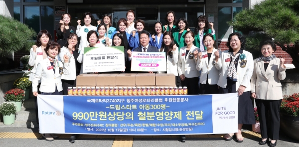 [충청중심뉴스] 청주시 국제로타리3740지구 소속 9개 여성로타리클럽은 17일 청주시청을 찾아 성장기인 취약계층 아동을 위해 영양제를 기탁했다.