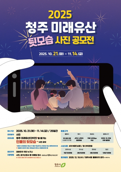 대한민국 국민이면 누구나 청주 미래유산을 즐기는 ‘인물의 뒷모습’을 담은 사진 작품을 촬영해 자유롭게 참여할 수 있다.