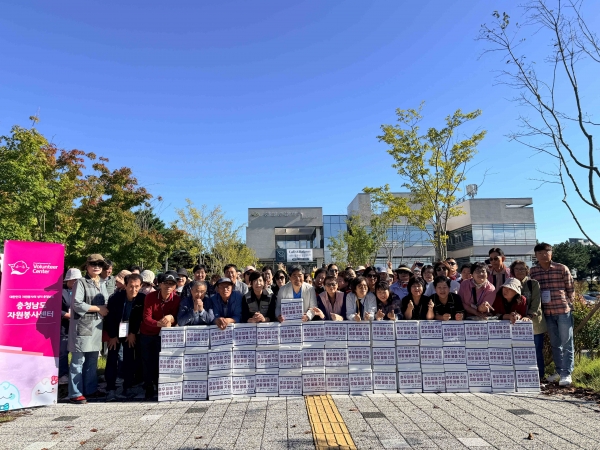 이번 교류는 지역 간 자원봉사 협력 강화를 위해 마련된 자리로 광주광역시 자원봉사자 80명이 충청남도자원봉사센터를 방문해 직접 담근 5kg 김치 50박스를 기부하며 따뜻한 정성을 전했다.