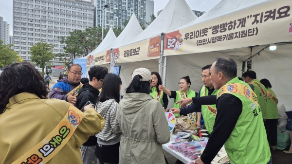 [충청중심뉴스] 천안시는 지난 18~19일 이틀간 천안종합운동장에서 열린 ‘2025 빵빵데이 천안’ 축제 현장에서 숨은 위기가구 발굴을 위한 ‘우리이웃, 빵빵하게 지켜요’ 행복키움지원단 홍보부스를 운영했다.