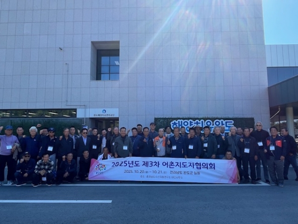 [충청중심뉴스] 충남도 수산자원연구소는 20일부터 21일까지 완도군 일원에서 어촌·수산업 발전의 선도적 역할을 하는 도내 어촌지도자들을 대상으로 역량 강화를 위한 ‘2025년 제3차 어촌지도자협의회’를 개최한다.