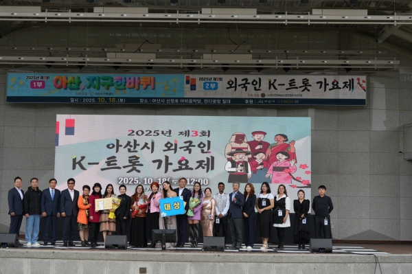 [충청중심뉴스] 한국연예예술인총연합회 아산지회가 주최·주관하고 아산시가 후원한 ‘2025년 제3회 아산시 외국인 K-트롯 가요제’ 가 지난 18일 신정호 야외음악당에서 성황리에 개최됐다.