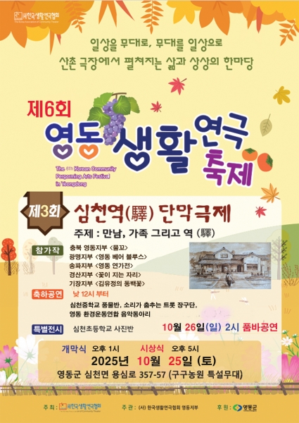 김명옥 영동지부장은 “생활 속에서 누구나 참여할 수 있는 연극을 통해 주민 간 소통과 문화 공감의 장을 만들고자 한다”며 “가을 정취와 함께 연극의 매력에 흠뻑 빠져보시길 바란다”고 전했다.