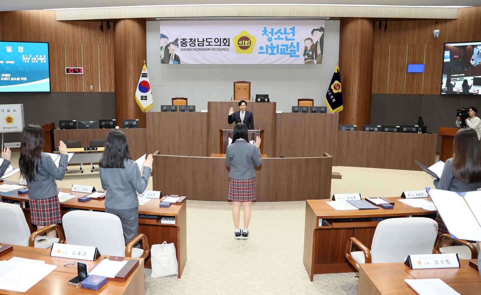 [충청중심뉴스] 충남도의회(의장 홍성현)는 23일 천안서여자중학교 학생 22명을 대상으로 ‘청소년 의회교실’을 운영하며 지방자치에 대한 이해를 높이는 체험형 교육을 진행했다.