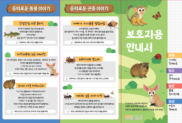 [충청중심뉴스] 아산시 생태곤충원은 어린이와 교감할 수 있는 관찰과 대화형식의 ‘보호자용 안내 리플렛’을 배포한다고 밝혔다.
