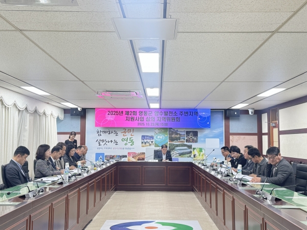 [충청중심뉴스] 충북 영동군은 23일 오후 군청 상황실에서 ‘2025년 제2회 양수발전소 주변지역 지원사업 심의 지역위원회’를 위원장의 주재로 개최하고 내년도 기본지원사업 계획에 대해 심의·의결했다.