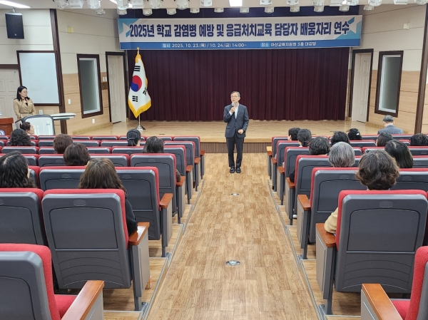 [충청중심뉴스] 아산교육지원청은 10월 23일과 24일 이틀간, 관내 초·중·고·특수 및 각종학교 88개교의 보건교사와 보건업무 담당교사를 대상으로 ‘학교 감염병 예방 및 응급처치교육 담당자 배움자리 연수’을 실시했다.