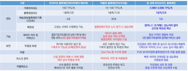 특히 이번에 개발된 하이브리드 블록체인은 기존 블록체인 대비 속도, 효율성, 보안성, 확장성 측면에서 뚜렷한 경쟁 우위를 확보했다.