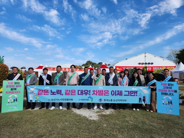 논산시 노사민정협의회 관계자는 “이번 캠페인은 지역이 함께 노동의 가치를 존중하고 차별 없는 일터와 조화로운 삶을 실현하기 위한 것”이라며 “앞으로도 노사민정이 협력해 모두가 존중받고 행복하게 일할 수 있는 환경을 만드는 데 최선을 다하겠다”고 말했다.