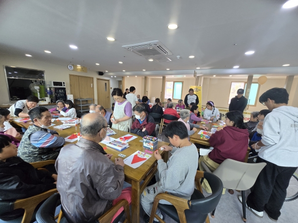 이날 어르신 25명에게 직접 만든 우유푸딩케잌을 전달하고 티슈 공예 체험도 함께 즐겼다.