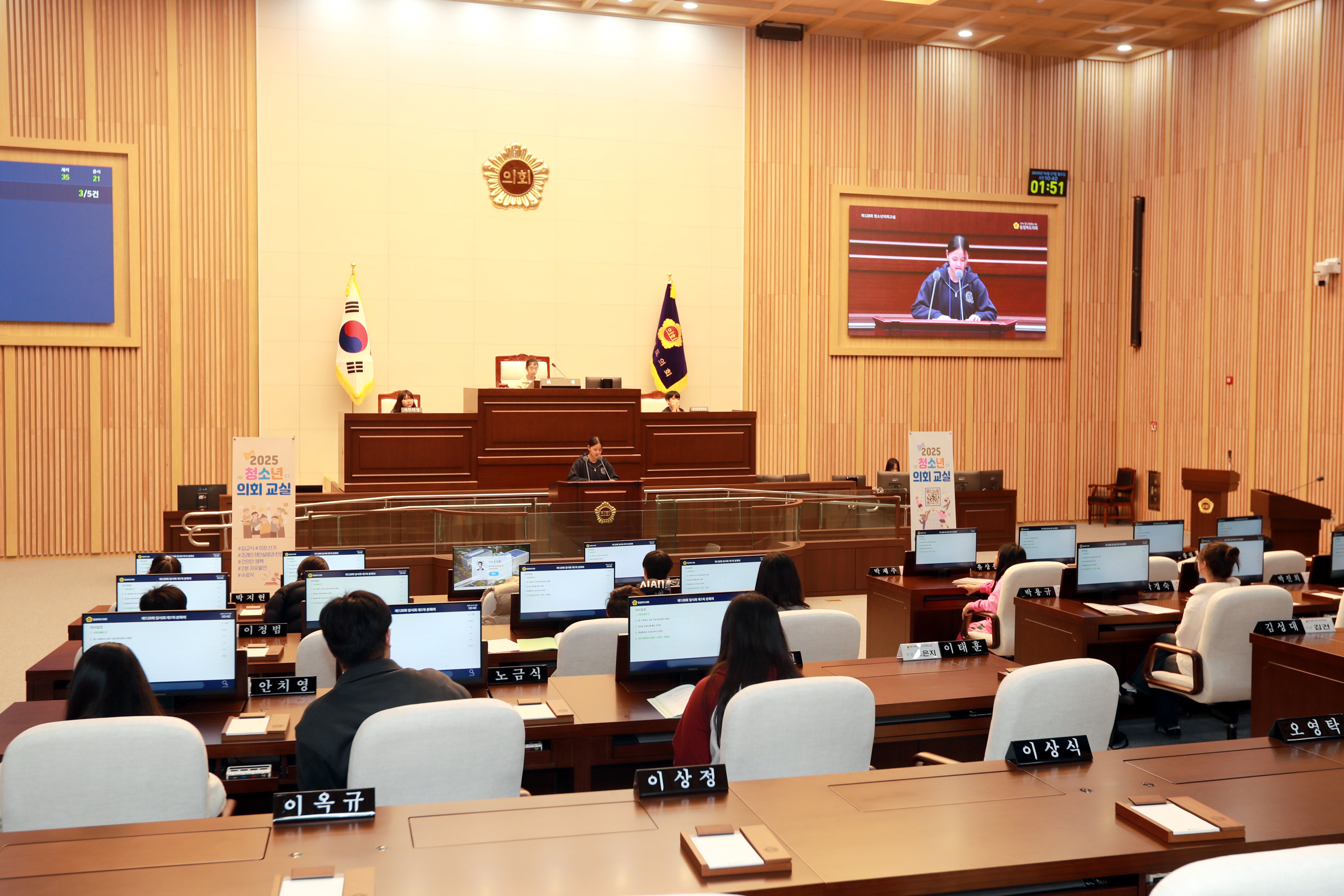 청소년 의회교실은 학생들이 1일 도의원이 되어 본회의장에서 의장 선거, 안건 처리, 2분 자유발언 등 의정활동을 체험하는 프로그램이다.