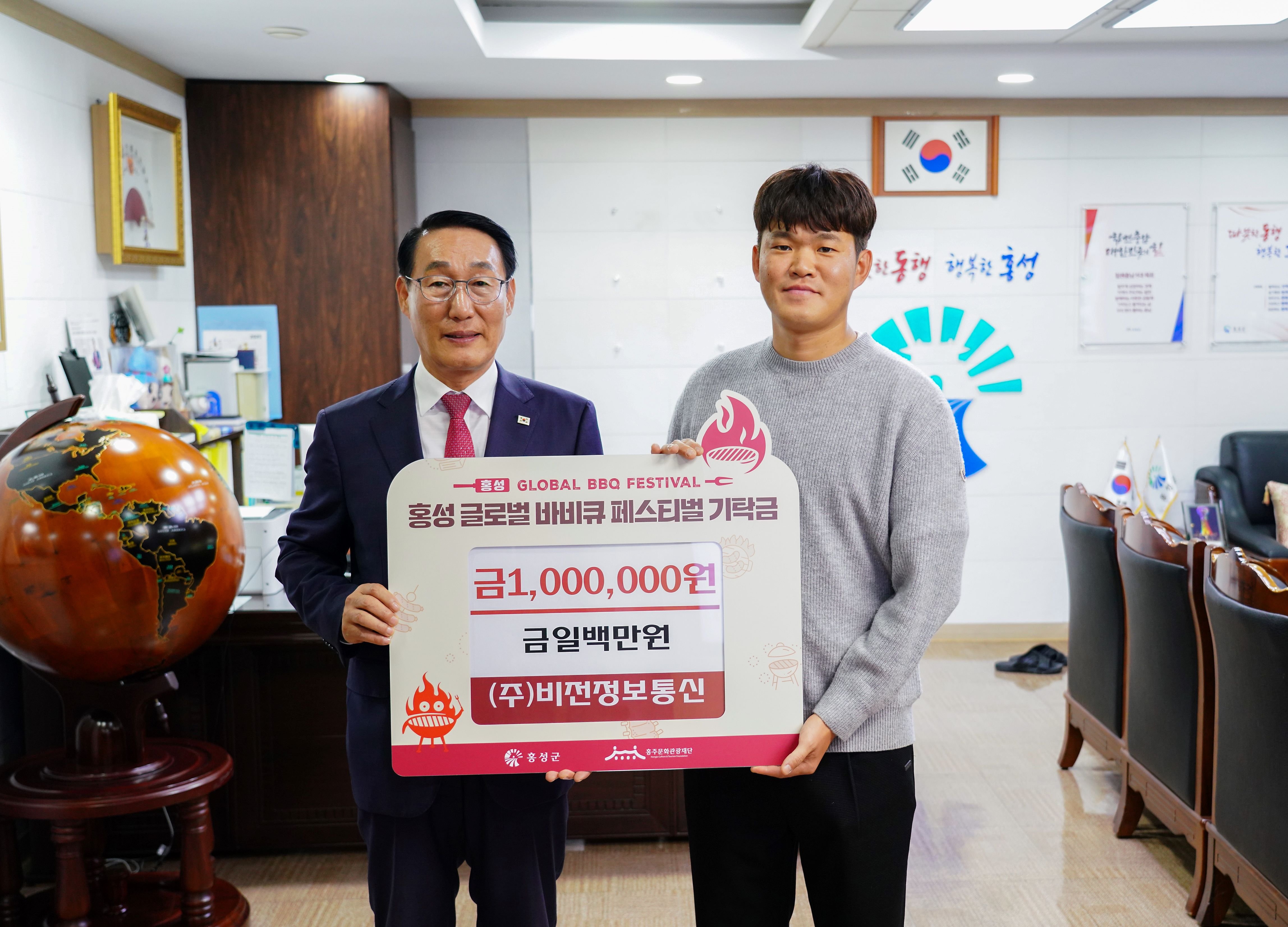 [충청중심뉴스] ㈜비전정보통신(대표 조백순)은 오는 30일부터 11월 2일까지 나흘간 홍주읍성 일대에서 개최되는 '홍성 글로벌바비큐 페스티벌'의 성공적인 개최를 지원하기 위해 성금 100만원을 기탁했다고 밝혔다.