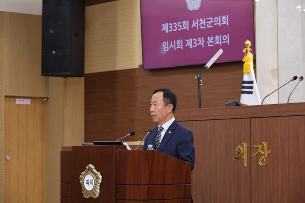 [충청중심뉴스] 서천군의회 한경석 의원은 10월 24일 열린 서천군의회 제335회차 본회의 군정질문을 통해, 서천군이 추진 중인 ‘옛 동백정해수욕장 복원사업’의 실효성과 향후 활용 방안에 대해 강도 높게 질의하며 단순 복원이 아닌 군민 중심의 미래형 관광전략으로의 전환을 촉구했다.