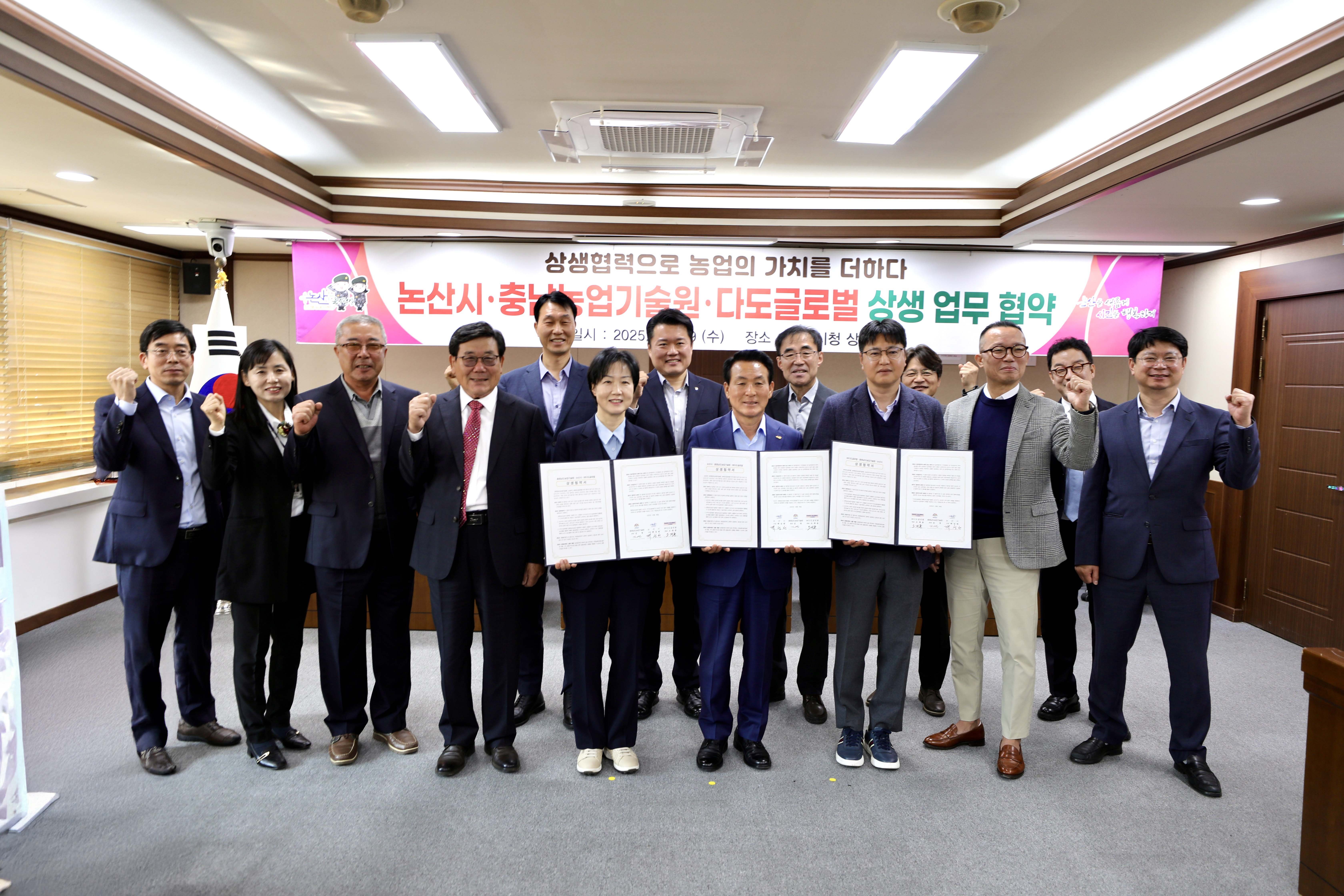 [충청중심뉴스] 충남도 농업기술원은 29일 논산시청에서 자체 개발한 ‘설향딸기’의 판로 확대 등을 위해 논산시·㈜다도글로벌과 상생 업무협약을 체결했다.