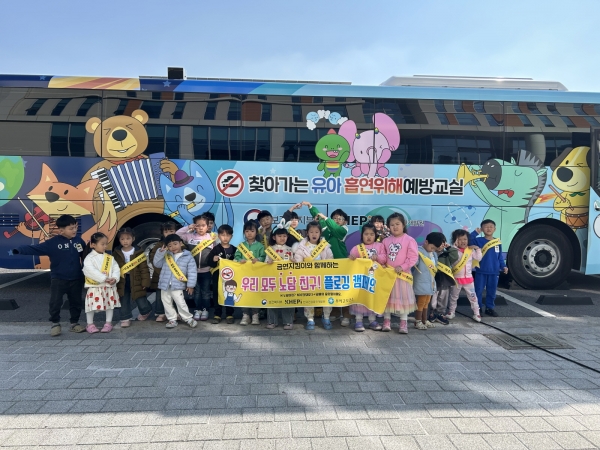 교실에서는 △동화 ‘노담밴드, 노스모킹별을 지켜줘’ △노담 OX 퀴즈 △신체 놀이 등 유아 눈높이에 맞춘 활동과 금연 버스에서는 △폐 건강 비교 △터치 게임 △미로 탈출 등 다양한 체험 콘텐츠를 통해 흡연의 해로움 등에 대해 알리는 활동 과정으로 진행됐다.