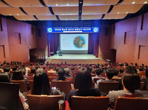 [충청중심뉴스] 예산군은 지난 28일 군청 추사홀에서 공직자 300여명을 대상으로 장애인식 개선교육을 실시했다.