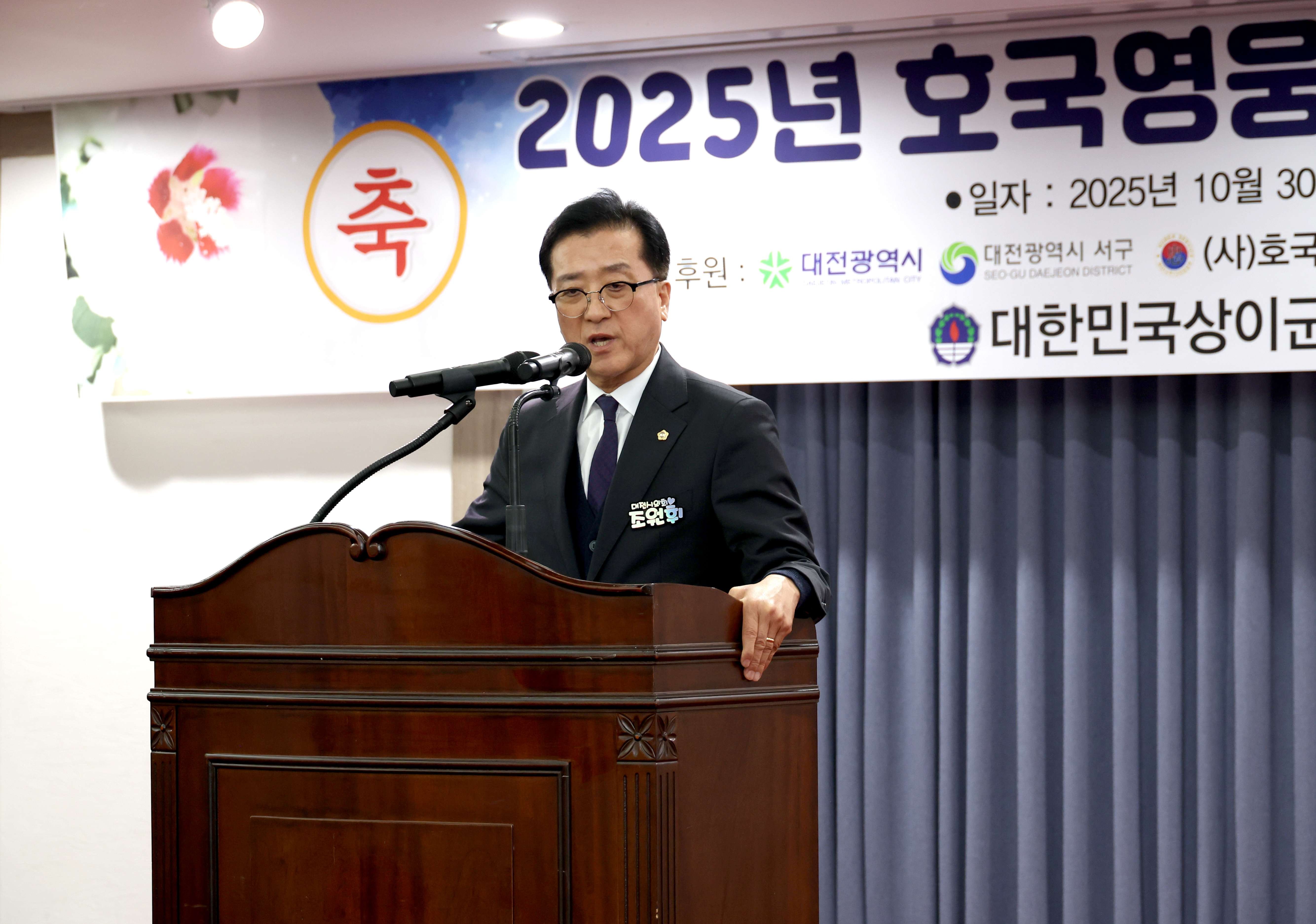 조원휘 의장은 “호국영웅들의 희생과 용기는 대전뿐만 아니라 대한민국의 미래와 평화를 지키는 초석이 됐고 대전은 국립대전현충원과 대전보훈병원 등 국내 대표적인 보훈 도시로 올해 6월에는 2029년 세계상이군인체육대회 개최 후보지로 선정되기도 했다”면서 “대전시의회는 나라사랑공원 조성사업의 조속한 추진과 참전용사님들의 명예 선양을 비롯해 대전 곳곳에 호국보훈 의식이 확산되도록 의회 본연의 역할에 최선을 다하겠다”고 말했다.