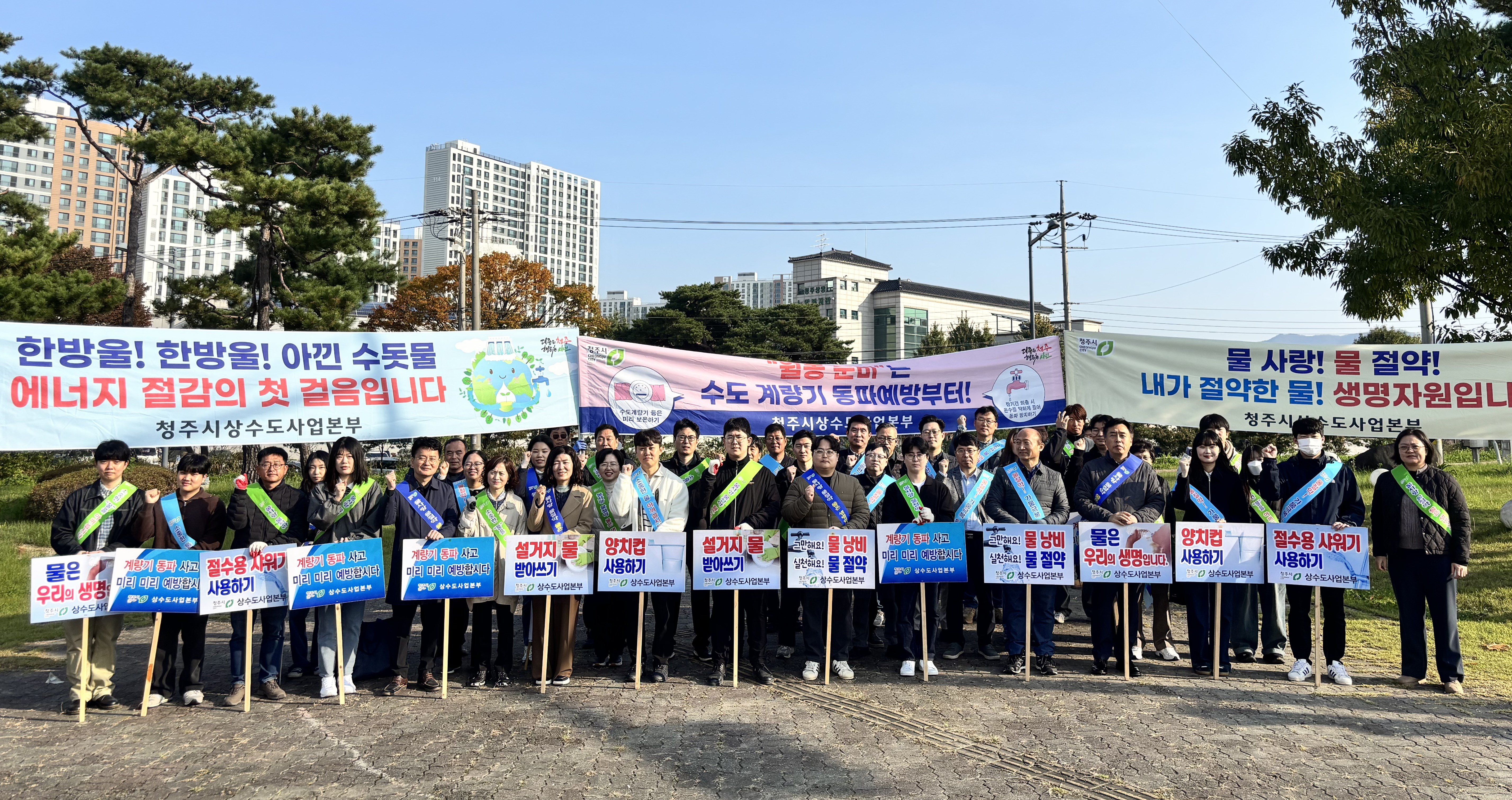 [충청중심뉴스] 청주시 상수도사업본부는 30일 상당구 지북사거리에서 직원 60여명이 참석한 가운데 탄소중립 및 물 절약 실천 캠페인을 실시했다.