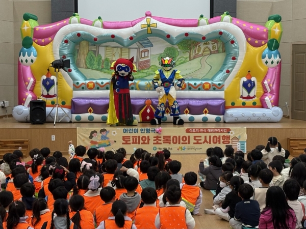 [충청중심뉴스] 아산시는 30일 동부건강생활지원센터 다목적 강당에서 지역 내 아토피·천식안심학교를 포함한 미취학 아동 및 유치원·어린이집 등 개소 원아를 대상으로 인형극 ‘토피와 초록이의 도시여행’ 공연을 진행했다고 밝혔다.