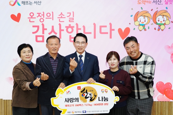 [충청중심뉴스] 충남 서산시는 지난 30일 대한한돈협회 서산·태안지부가 이웃을 돕기 위해 800만원 상당의 한돈 전지 727㎏을 기탁했다고 밝혔다.