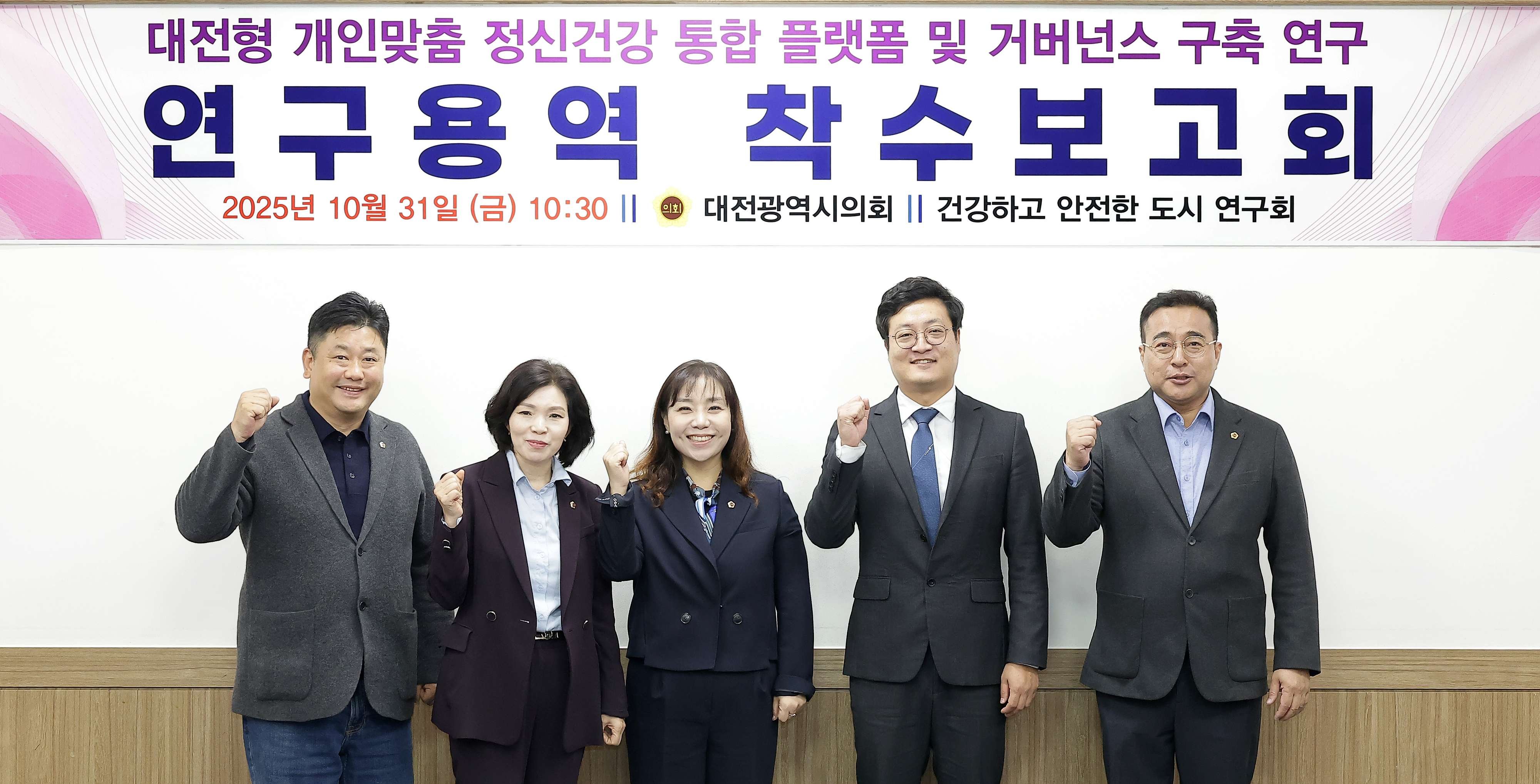 [충청중심뉴스] 대전시의회 ‘건강하고 안전한 도시연구회’는 31일 시의회 공감실에서 ‘대전형 개인맞춤 정신건강 통합 플랫폼 및 거버넌스 구축’연구 용역 착수 보고회를 개최했다.