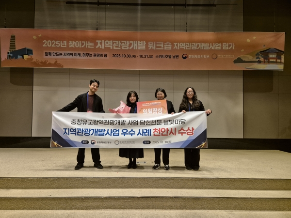 [충청중심뉴스] 천안시는 문화체육관광부와 한국문화관광연구원 주관의 2025년 찾아가는 지역관광개발 워크숍 지역관광개발사업 평가에서 ‘담헌천문&달빛마당’ 건립 사업이 우수사례 지자체로 선정돼 위원장상을 수상했다고 3일 밝혔다.