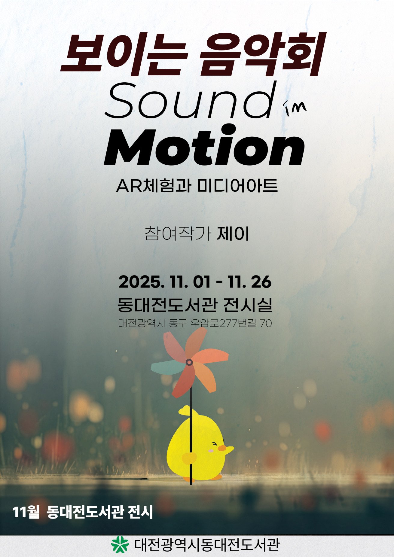 [충청중심뉴스] 동대전도서관은 1일부터 26일까지 1층 전시실에서 ‘보이는 음악회, SOUND IN MOTION 展’을 진행하고 있다.