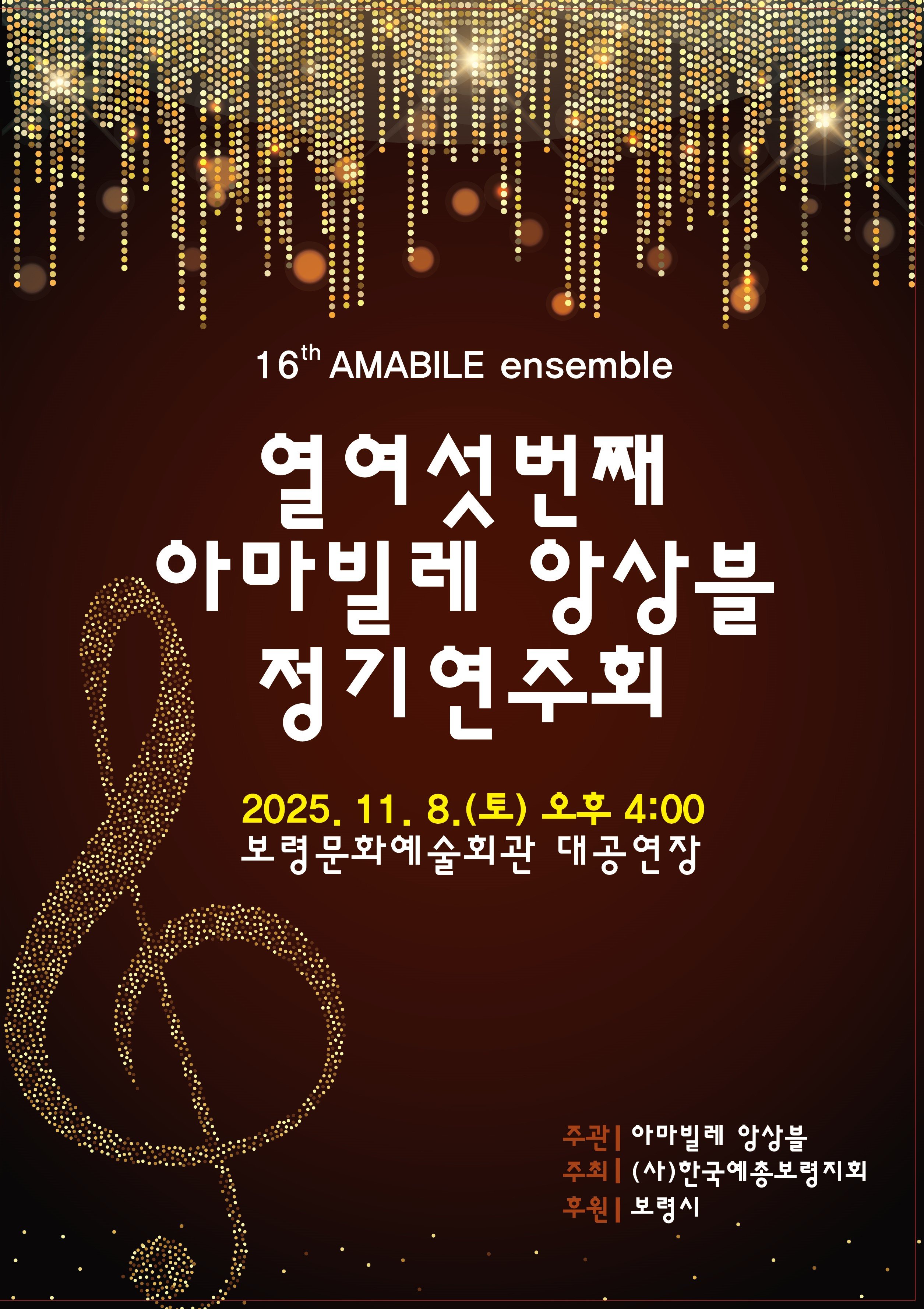 [충청중심뉴스] 보령시는 아마빌레 앙상블이 오는 11월 8일 보령문화예술회관 대공연장에서 제16회 정기연주회를 개최한다고 밝혔다.