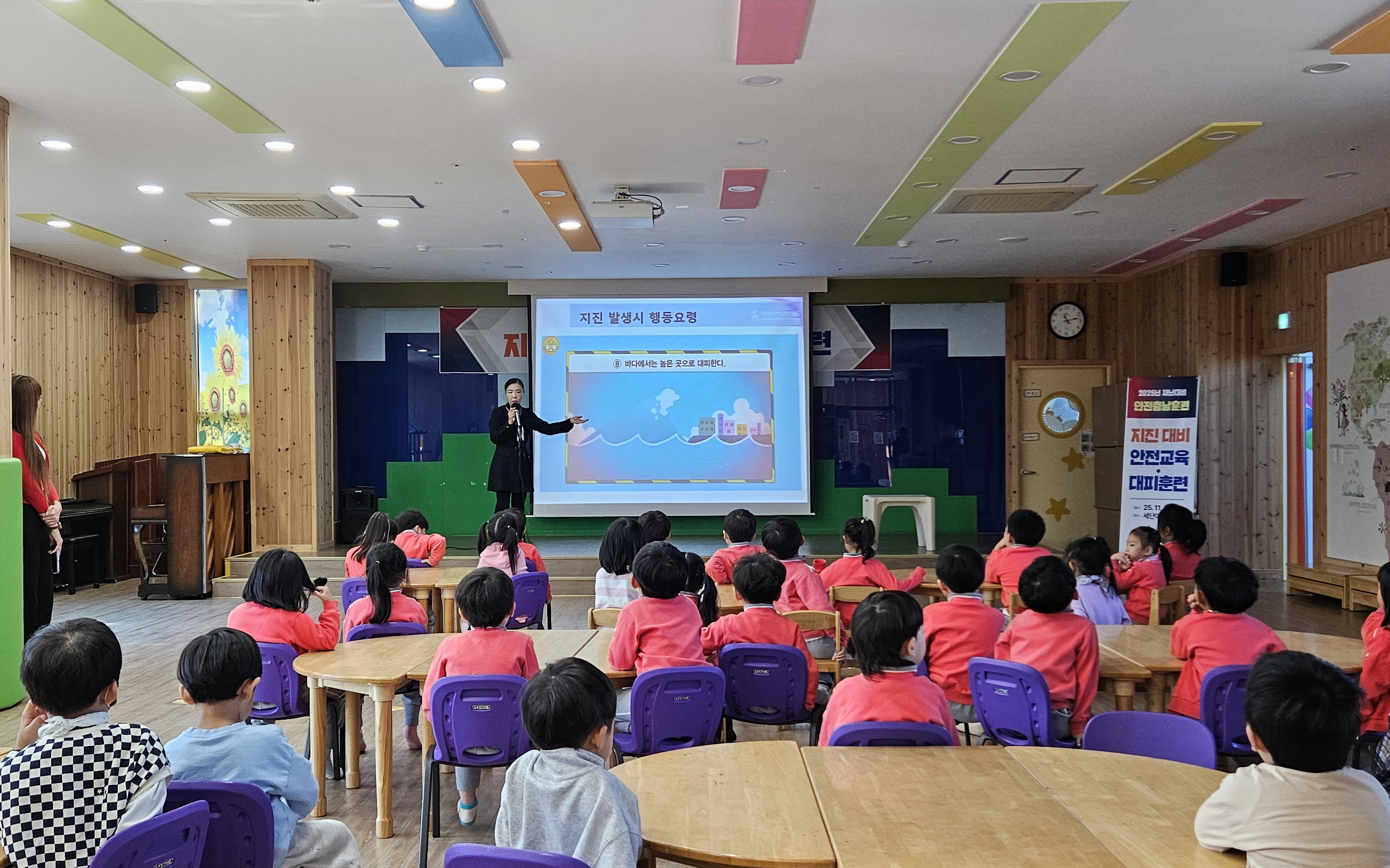 특히 시는 영유아의 눈높이에 맞춘 맞춤형 교육을 위해 재난 전문 강사를 초빙해 만화 영상을 활용한 지진 대응 교육을 진행했으며 실제 상황과 유사한 지진음 효과를 적용한 실전 대피 훈련도 병행했다.