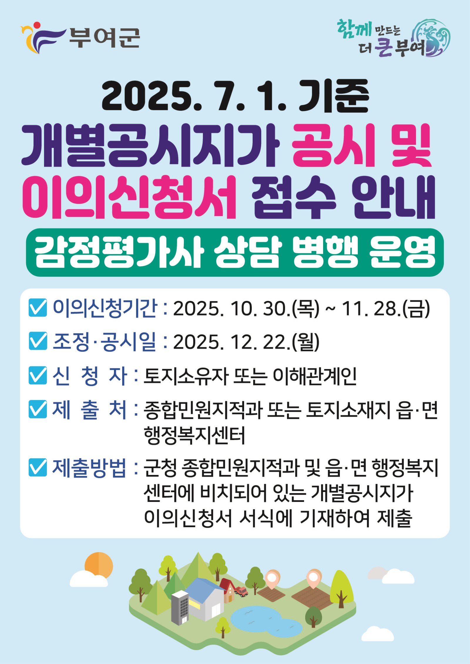 [충청중심뉴스] 부여군은 2025년 7월 1일 기준 개별공시지가를 결정·공시했다고 5일 밝혔다.