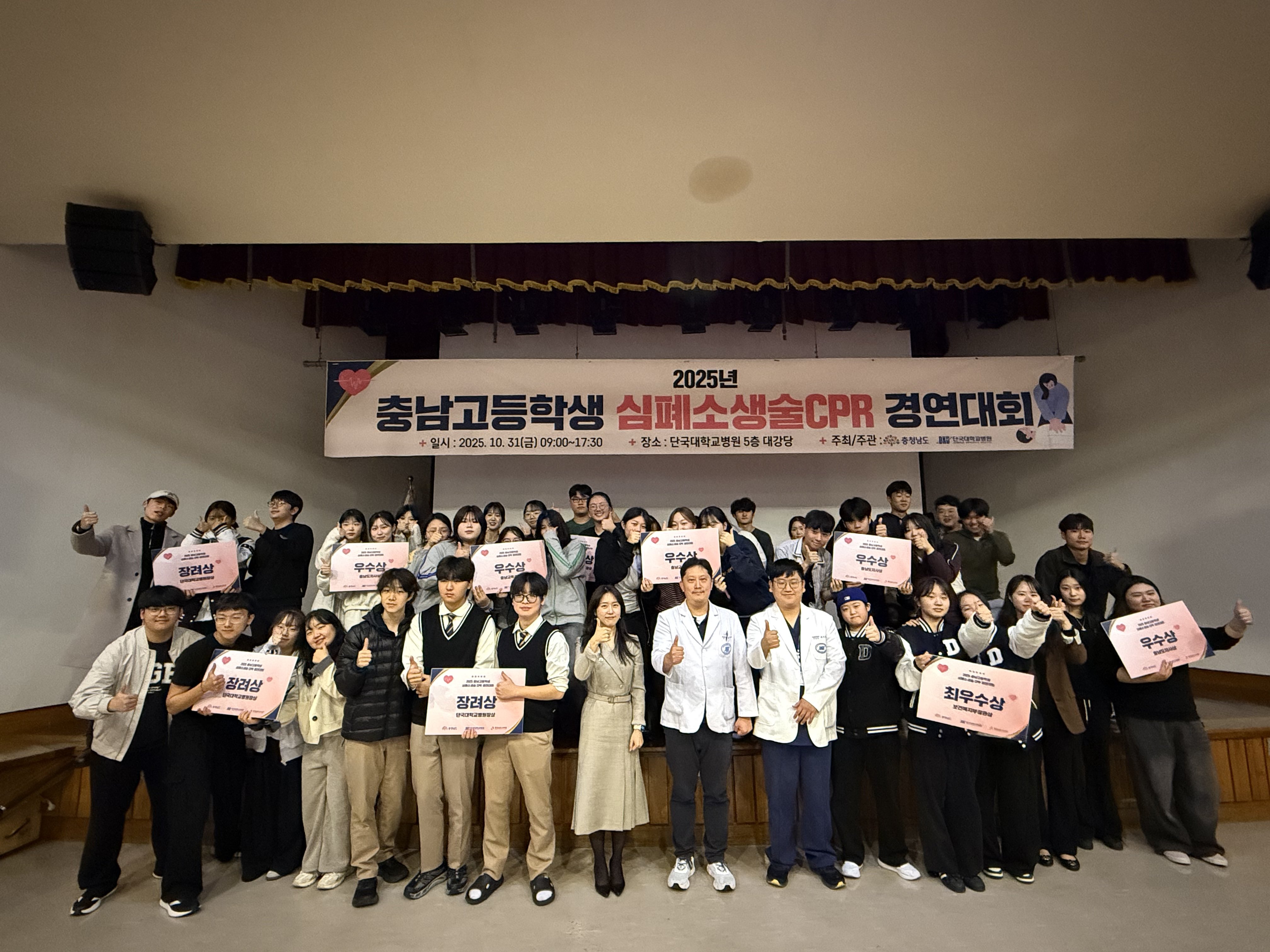 [충청중심뉴스] 충남도는 심폐소생술 확산을 위해 개최한 ‘2025 고등학생 심폐소생술 경연대회’에서 천안청수고등학교가 최우수상의 영예를 차지했다고 6일 밝혔다.