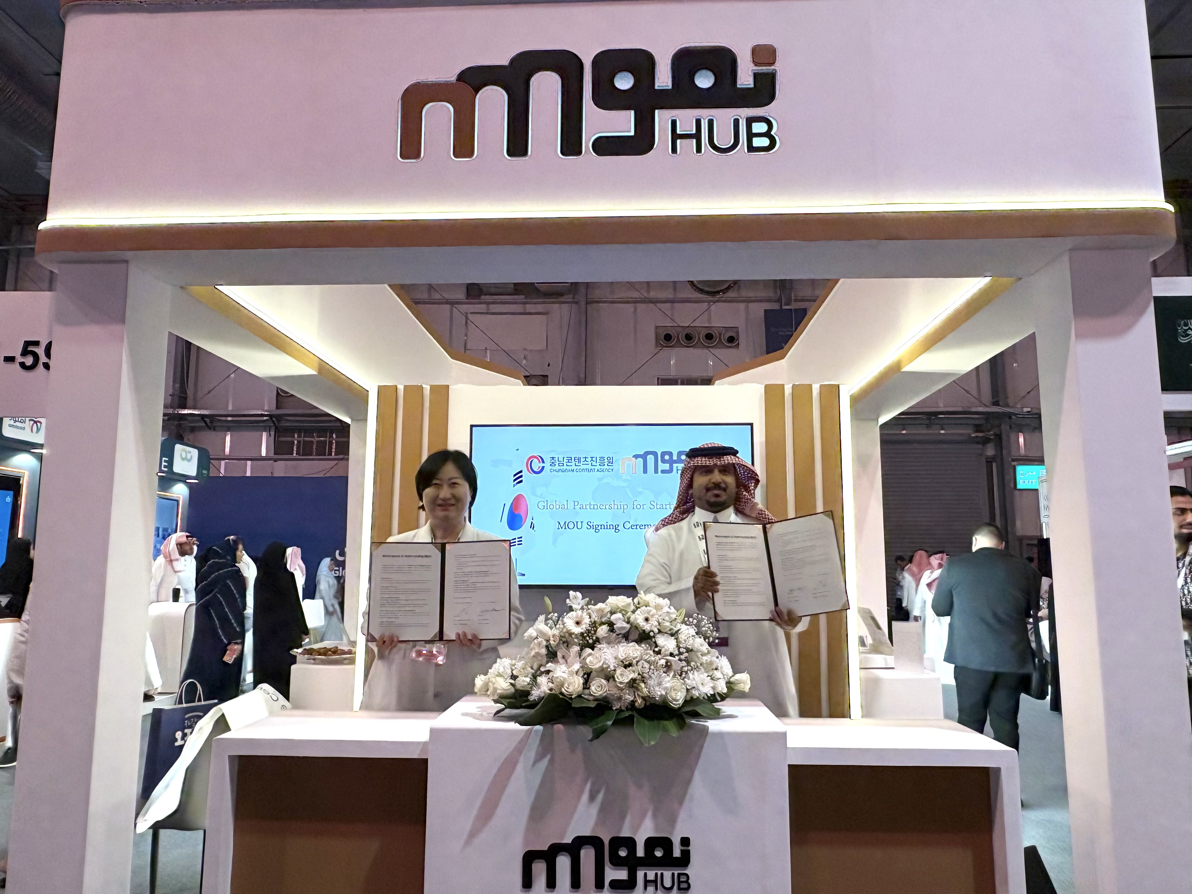 [충청중심뉴스] 충남콘텐츠진흥원이 사우디아라비아 리야드에서 열린 BIBAN 2025 해외 전시회에 참가해, 느무헙과 지역 스타트업의 중동 진출 및 글로벌 역량 강화를 위한 업무협약을 체결했다고 5일 밝혔다.