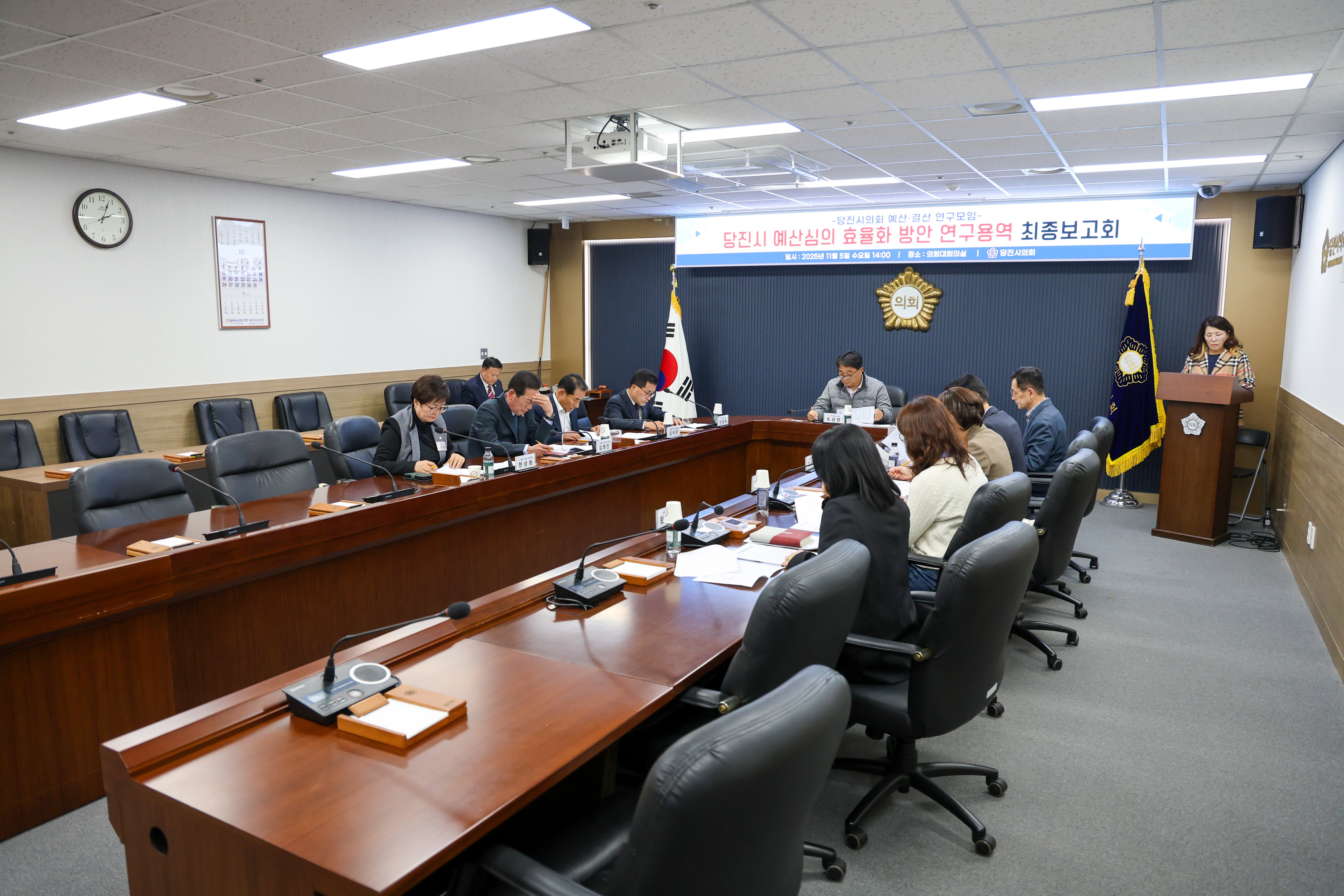 [충청중심뉴스] 당진시의회 예산 · 결산 연구모임이 11월 5일 의회 대회의실에서 ‘당진시 예산심의 효율화 방안 연구용역’최종보고회를 개최했다고 전했다.