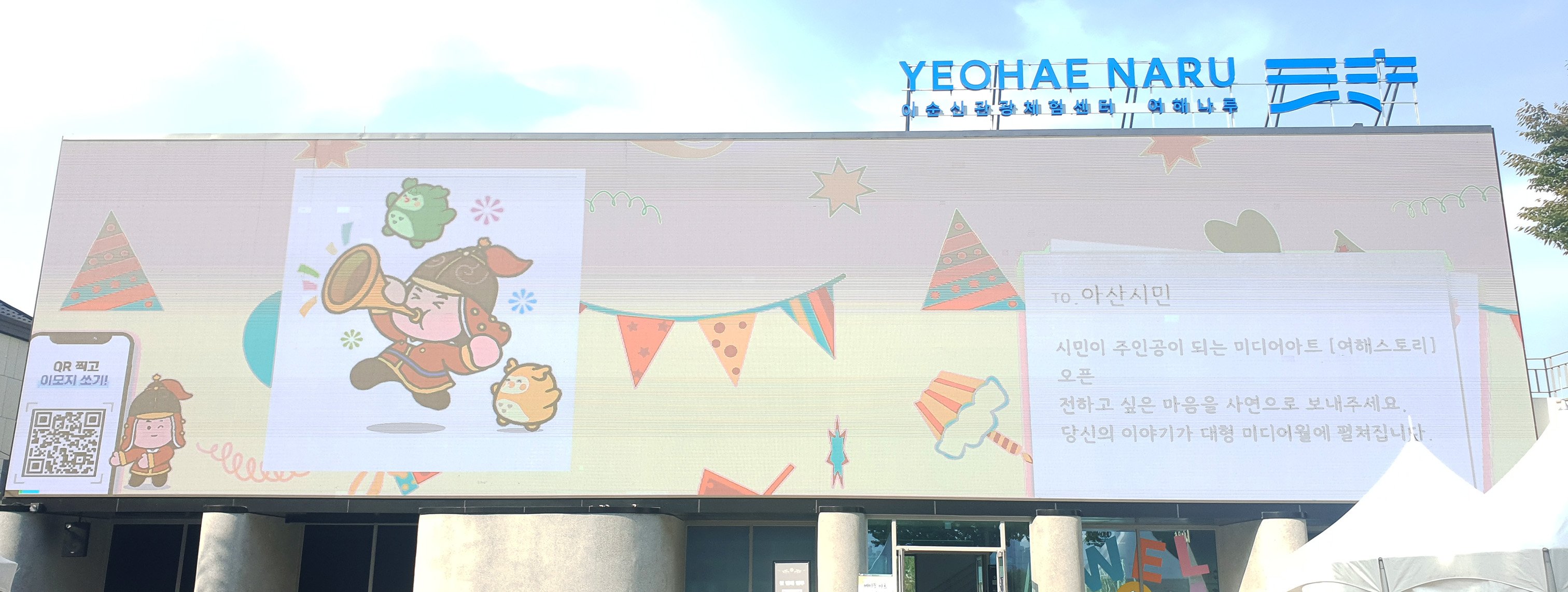 [충청중심뉴스] 아산시는 11월부터 이순신관광체험센터 외벽의 대형 엘이디 미디어월을 활용해 시민이 직접 참여하는 미디어아트 콘텐츠 ‘미디어월 여해스토리’를 운영한다고 밝혔다.